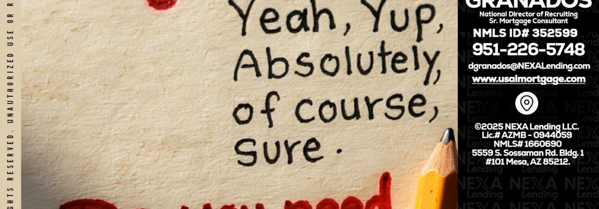 Hi, my name is David Granados. I’m a Loan Officer with NEXA Lending LLC., offering personalized mortgage solutions, fast customized quotes, great rates and service with integrity.