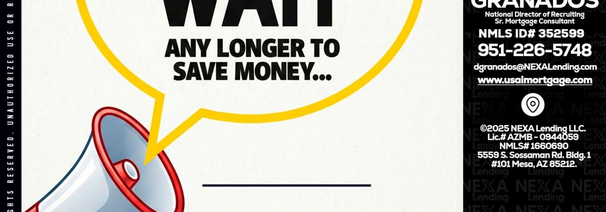 DONT WAIT - David Granados -National Director of Recruiting / Senior Mortgage ConsultantHi, my name is David Granados. I’m a Loan Officer with NEXA Lending LLC., offering personalized mortgage solutions, fast customized quotes, great rates and service with integrity.