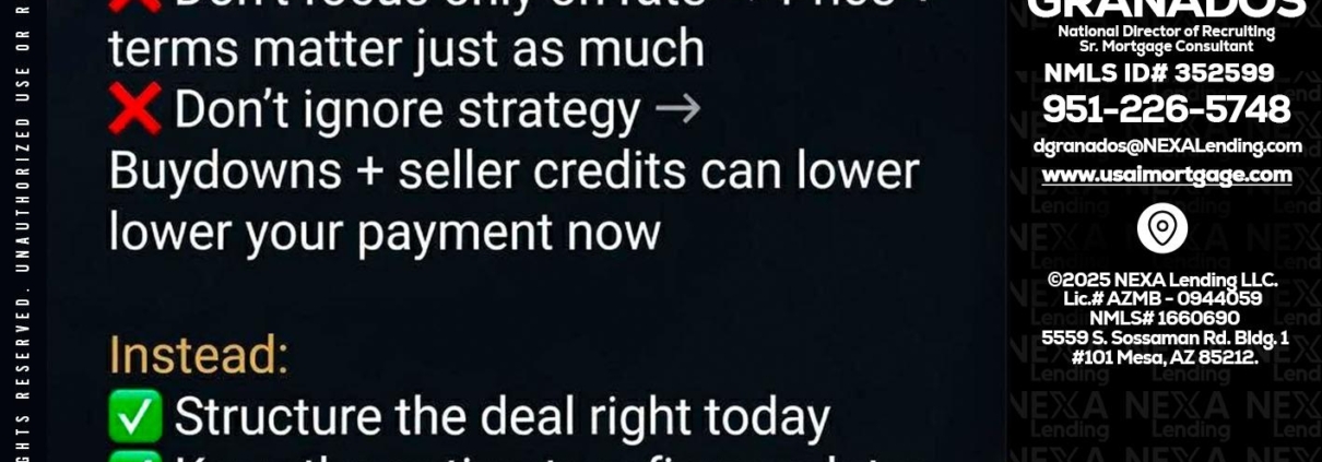 IF YOU ARE - David Granados -National Director of Recruiting / Senior Mortgage ConsultantHi, my name is David Granados. I’m a Loan Officer with NEXA Lending LLC., offering personalized mortgage solutions, fast customized quotes, great rates and service with integrity.