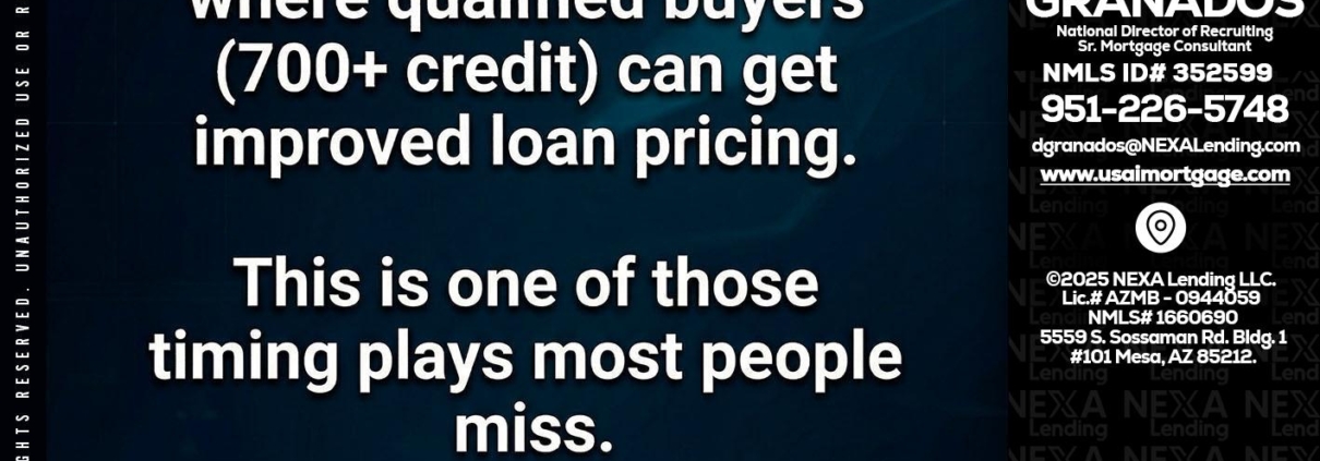 Hi, my name is David Granados. I’m a Loan Officer with NEXA Lending LLC., offering personalized mortgage solutions, fast customized quotes, great rates and service with integrity.
