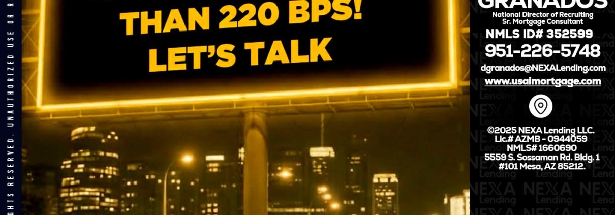 Looking for MLOs - David Granados -National Director of Recruiting / Senior Mortgage ConsultantHi, my name is David Granados. I’m a Loan Officer with NEXA Lending LLC., offering personalized mortgage solutions, fast customized quotes, great rates and service with integrity.